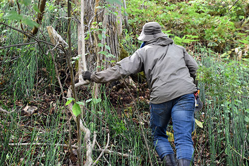 この辺りの10m四方くらいの範囲だろうと思われました。との木かわからないけれども、木の根元に埋めた記憶があります。ただ木も成長しますから、下手すると倒れて新たに木が生えている可能性もあります。大雨で全部流れた可能性もあります。地形も変わっているかもしれない。