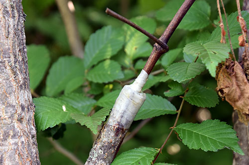 さて、我が家の庭の山ぶどうも少々夏バテしたのか不作でありました。ただ豊作だとしても庭ですから、量的には限界というものがあります。前にも書きましたが(v520)、山ぶどうを山の畑に仕込めないかという実験は続けています。