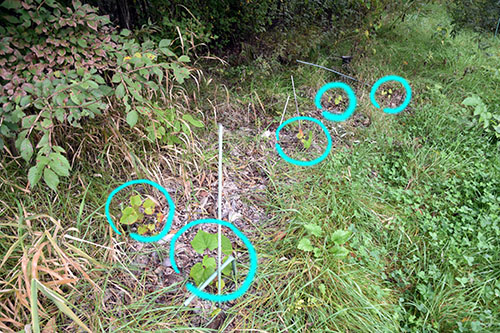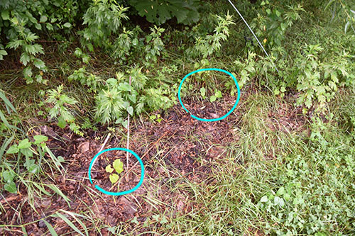 落ち葉は気休めです。これを2日に分けて4か所に作りました。その作った場所はここ。